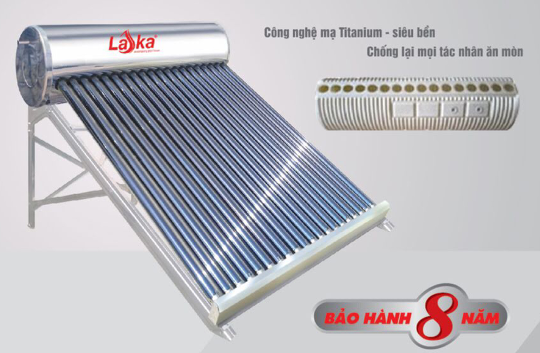 - Ống chân không: Công nghệ Nanomax giúp hấp thụ nhiệt lên đến 99%, chịu được mưa đá 25mm.